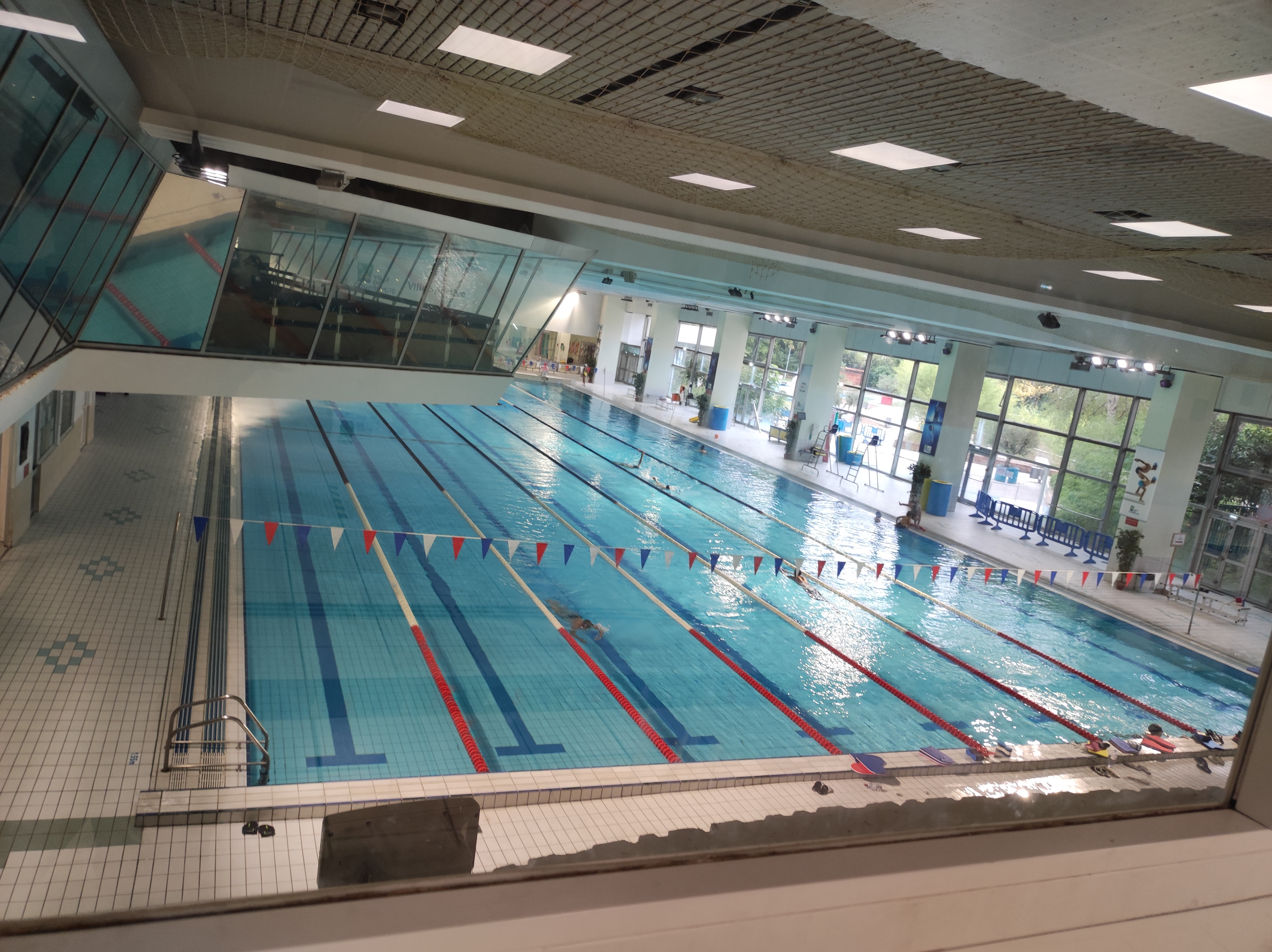 Très belle piscine en centre ville. Bassin de 25 m confortable à 29 degrés. Bassin de 50 m olympique à 27 degrés. Espace extérieur avec solarium.